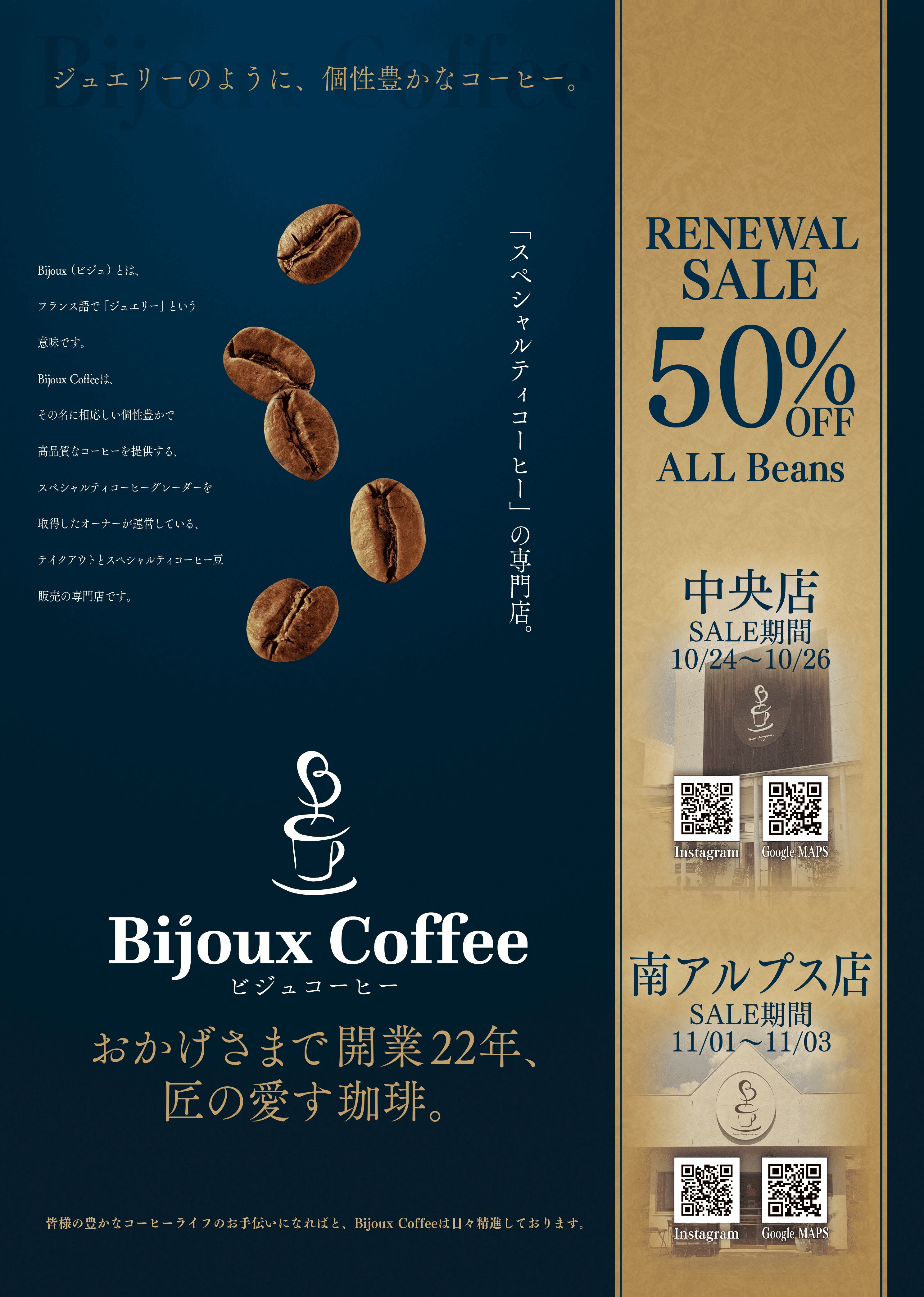 2020.9 南アルプス市にBijouxCoffee MINAMI-ALPS店オープン。